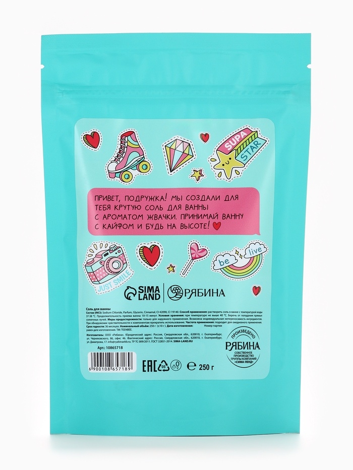 TEEN BEE Соль для тела в пакете 250 гр, аромат жвачка