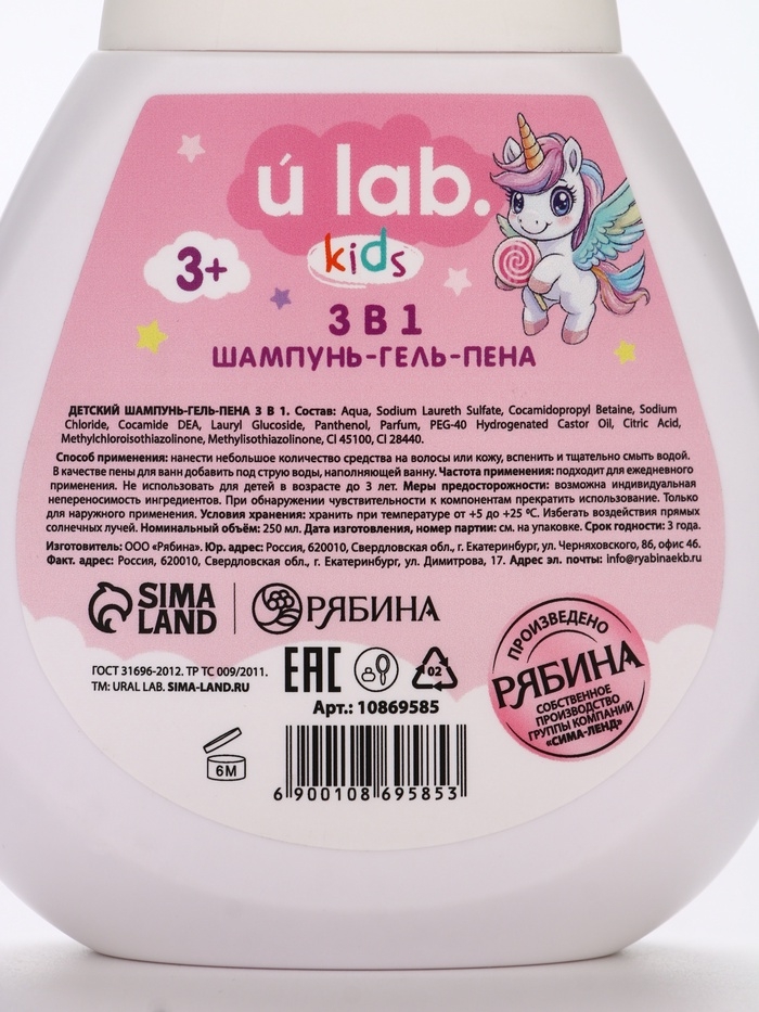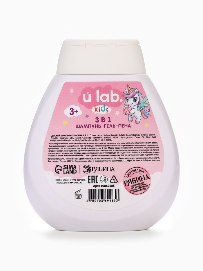 Детский шампунь-гель-пена 3в1 "Единороги", 250 мл, аромат сладкий леденец