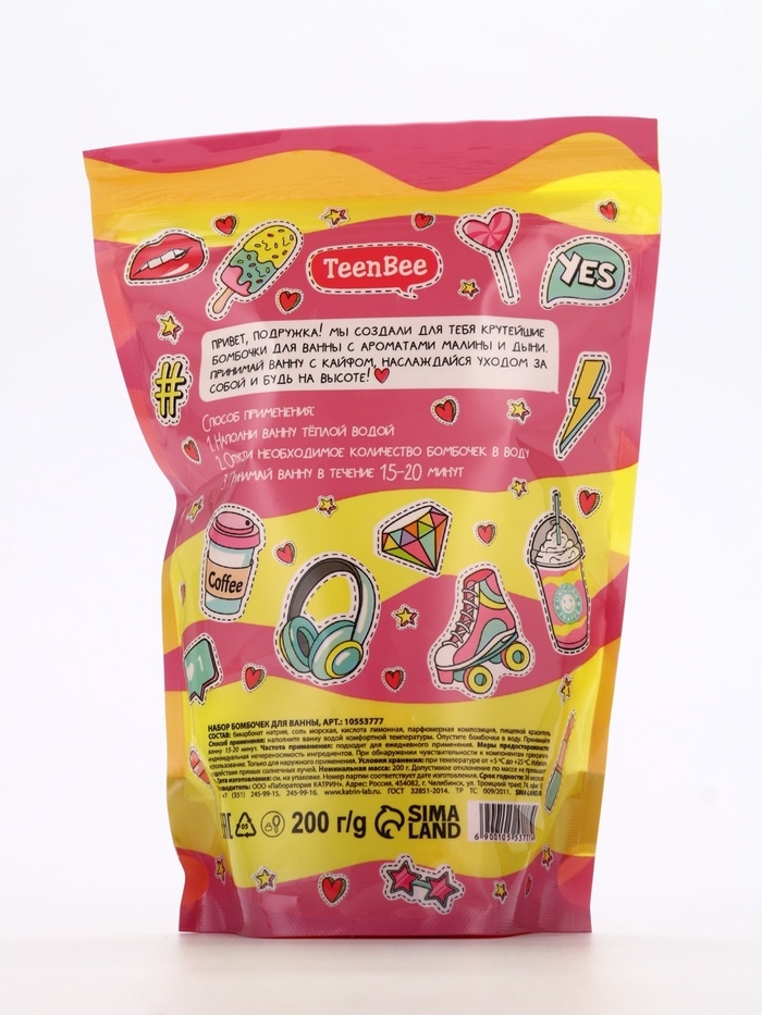 TeenBee Набор бомбочек для ванны дыня-малина, 200 гр