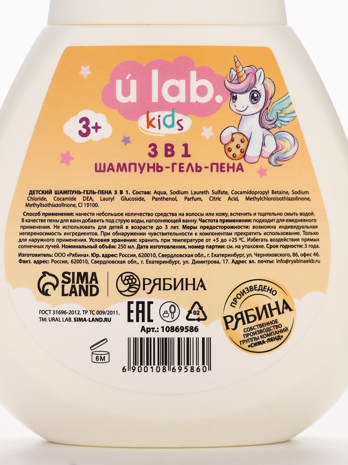 Детский шампунь-гель-пена 3в1 "Единороги", 250 мл, аромат банановая печенька