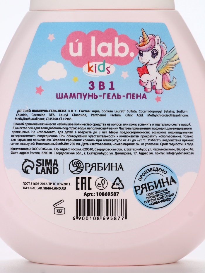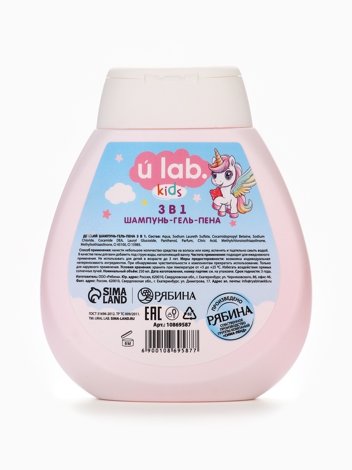 Детский шампунь-гель-пена 3в1 "Единороги", 250 мл, аромат мармеладные мишки
