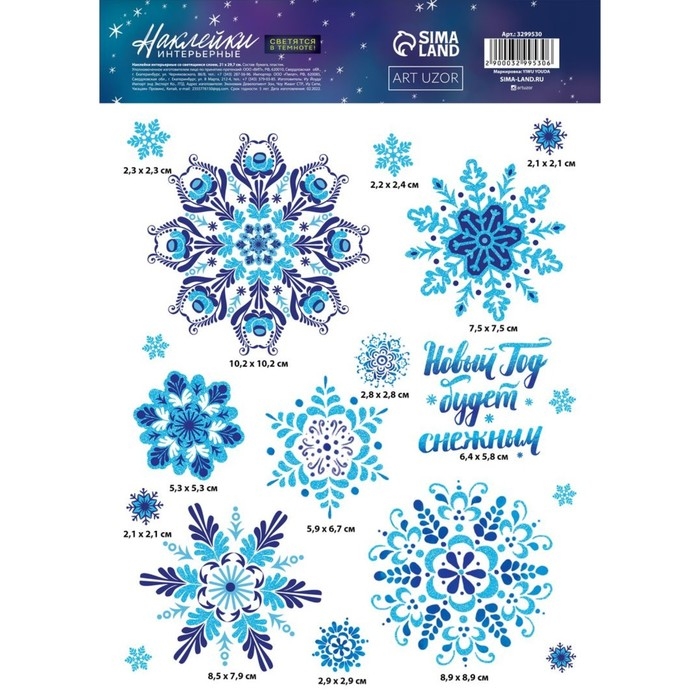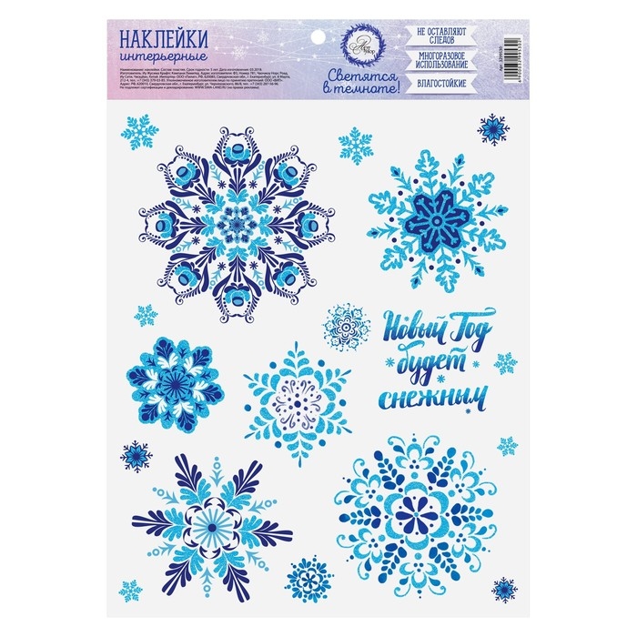 Интерьерная наклейка со светящимся слоем «Новый Год будет снежным», 21 х 29,7 х 0,1 см