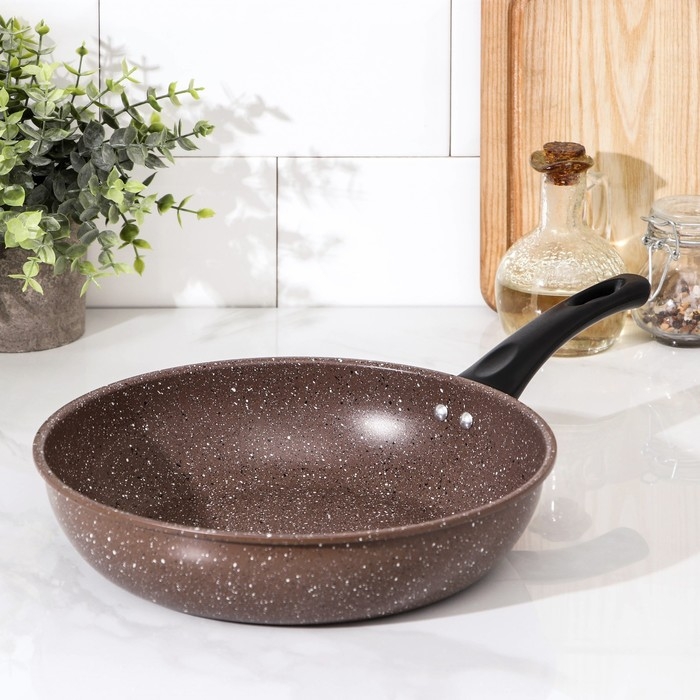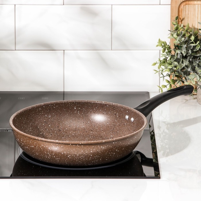 Сковорода Rock, d=25 см, пластиковая ручка, антипригарное покрытие, цвет коричневый