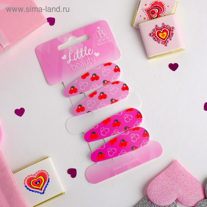 Невидимка для волос "Ягодки" (набор 4 шт) вишенки 5 см, розовый