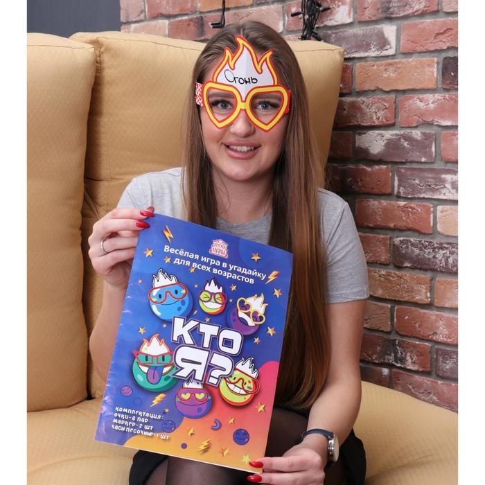«Кто Я?» - это интересная и увлекательная игра для детей и взрослых! Сумасшедший азарт, веселье и смех сквозь слёзы вам гарантированы! Игроки надевают очки и маркером в окошке пишут друг другу слово. Задача каждого игрока, задавая наводящие вопросы, отгадать, что написано у него. Вопросы нужно формулировать таким образом, чтобы ответить на них можно было односложно: «да» или «нет». У игрока есть одна минута, в течение которой можно задавать неограниченное количество вопросов. Если же игрок не справляется с заданием – право хода переходит к следующему участнику.