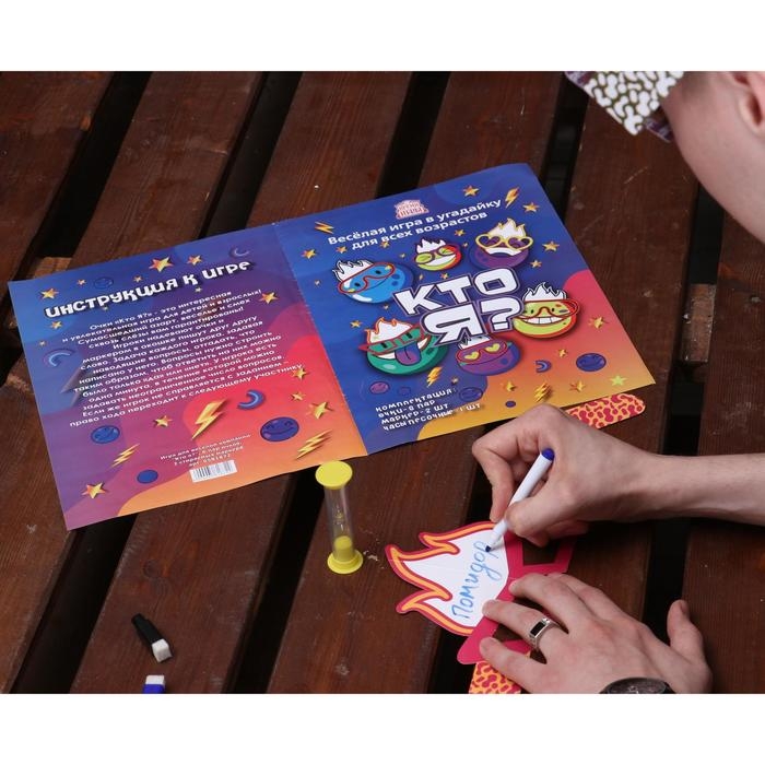 Увлекательная настольная игра "Кто Я?" 6 очков, 2 стираемых маркера, часы песочные 1 мин