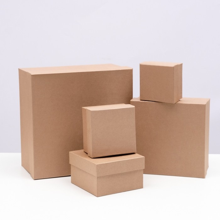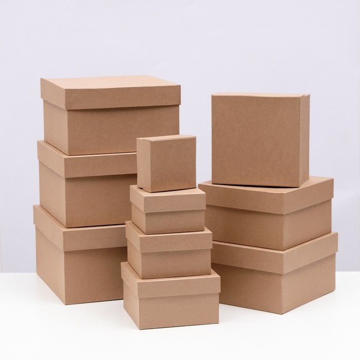 Набор квадратных коробок крафт 10 в 1, 28 х 28 х 15см - 10 х 10 х 6 см