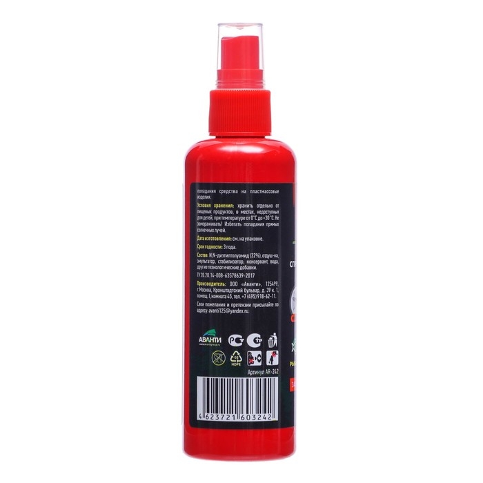 Описание:Для защиты людей от нападения кровососущих насекомых (комаров, мокрецов, москитов, слепней, клещей) при нанесении на открытые части тела. EXTREME Лосьон-спрей идеально подойдет для защиты от комаров в экстримальных условиях: на рыбалке, охоте, отдыхе. Защитит от насекомых в лесу, в тайге, в горах, в районах с повышенной влажностью.Способ применения:Средство тонким слоем без втирания нанести на открытые части тела - лицо, руки, ноги, шею. Время защитного действия от насекомых - до 6 часов. При необходимости обработку повторить.Действующие вещество: диэтилтолуамид - 32%