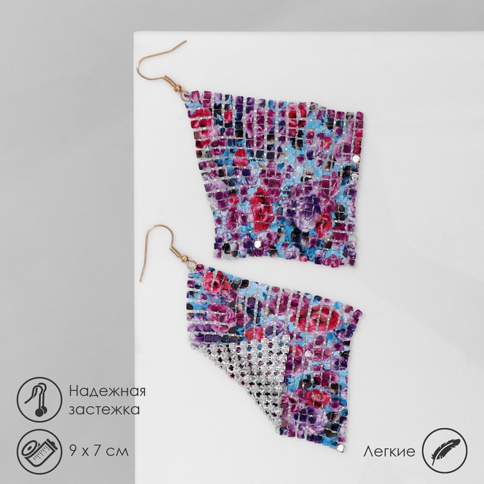 Серьги висячие «Ромб» кольчуга, всплеск цветов, цветные, 9 см