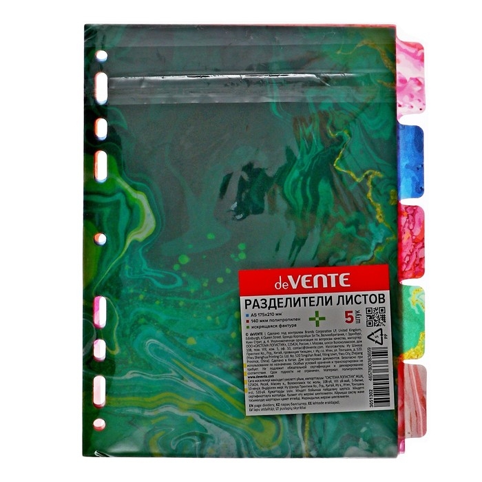 Разделитель листов A5 (175 x 210 мм) цветовой, 5 листов, "deVENTE. Marandi. Sparkl" полипропилен 140 мкм, искрящаяся фактура, с рисунком, индивидуальная упаковка
