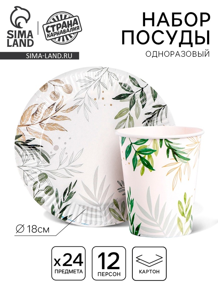Набор бумажной посуды одноразовый «Природа», 12 персон