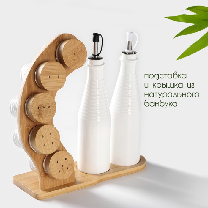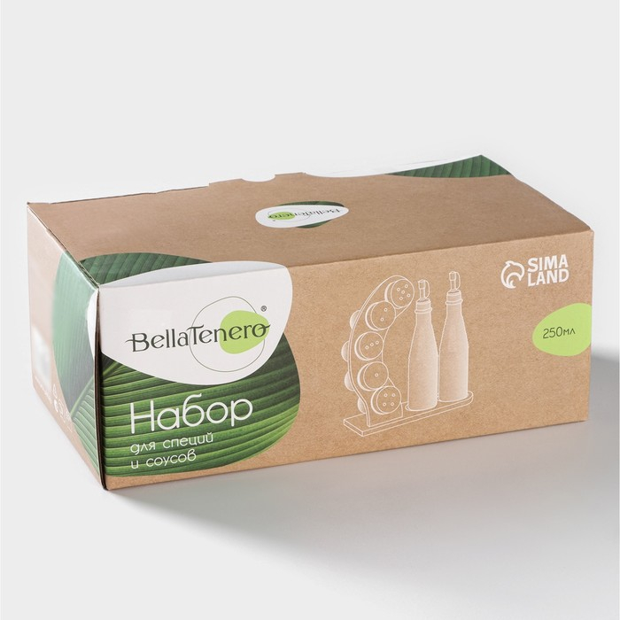 Набор фарфоровый для специй и соусов BellaTenero, 8 предметов: 2 ёмкости 250 мл, 5 баночек для специй, подставка, цвет белый