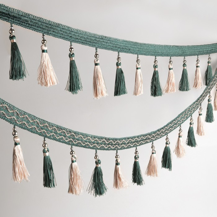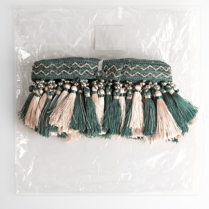 Тесьма с бусинами, 13 см, 5 ± 0,5 м, цвет изумрудный/бежевый