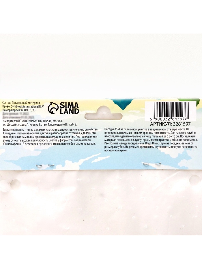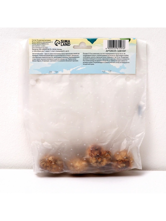 Калла «Смесь», клубнелуковица в пакете с перфорацией, р-р 10/12, 5 шт.
