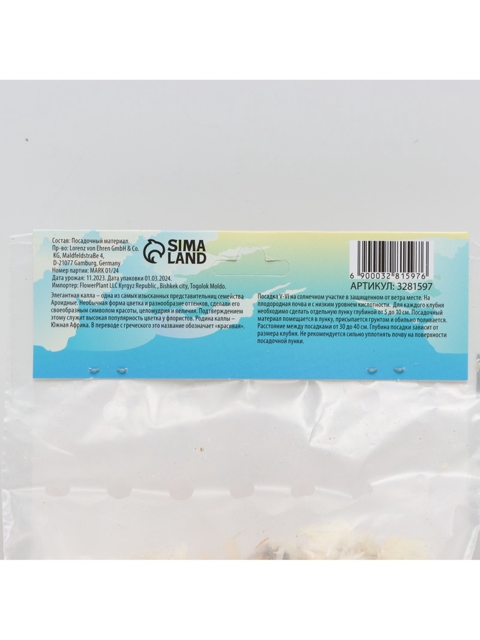 Калла белопятнистая, р-р 14/16, 1 шт, Весна 2025