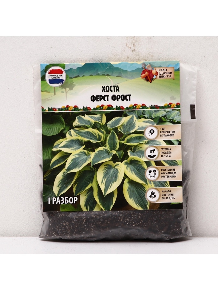 Хоста «Ферст Фрост», корневище в пакете с торфогрунтом, р-р I, 1 шт.