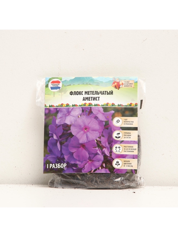 Флокс метельчатый «Аметист», корневище в пакете с торфогрунтом, р-р I, 2 шт.