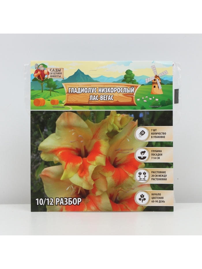 Гладиолус Низкорослый "Лас-Вегас", луковица цветов в пакете с перфорацией, р-р 10+, 7 шт.