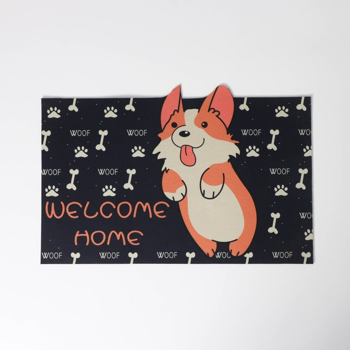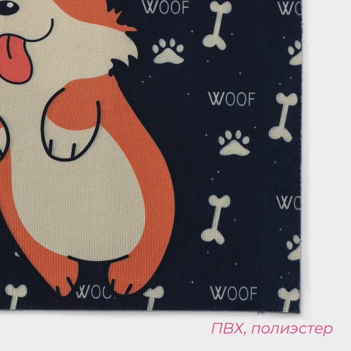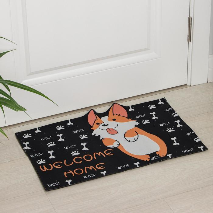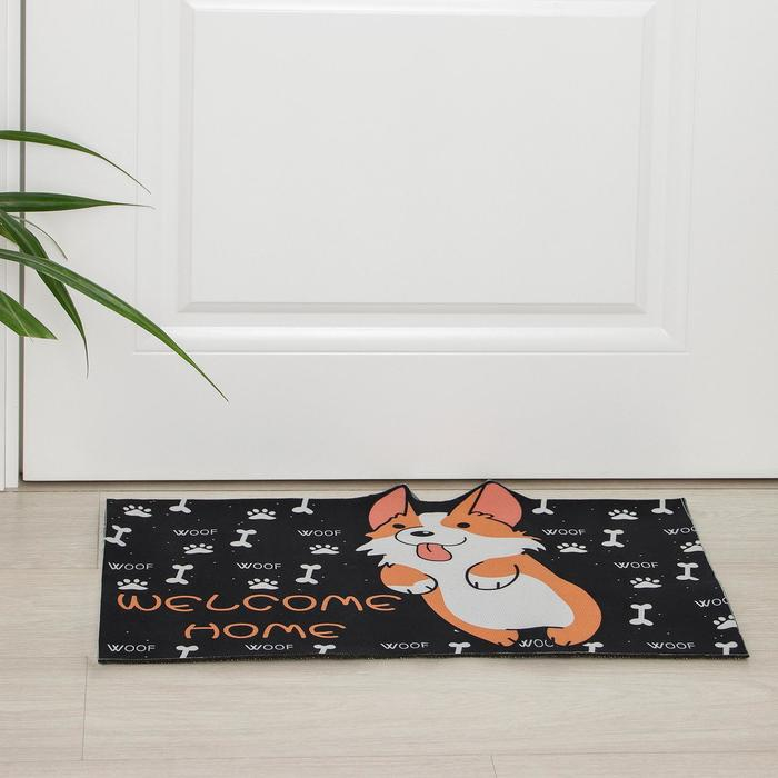 Коврик влаговпитывающий придверный Доляна «Корги», без окантовки, 39×59 см, цвет чёрный