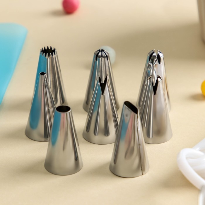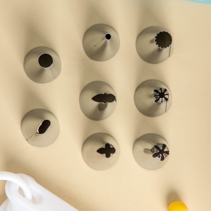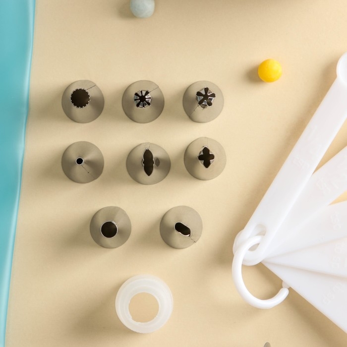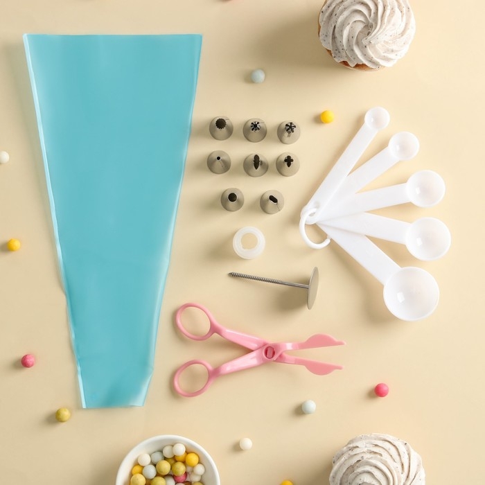 Набор кондитерский «Норма», 13 предметов: щипцы, 8 насадок, кондитерский мешок, адаптер, мерные ложки, кондитерский гвоздь