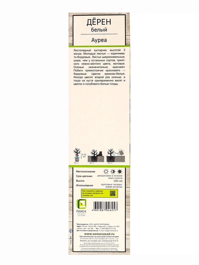 Дерен белый «Ауреа», саженец, декоративный, 1 шт., туба