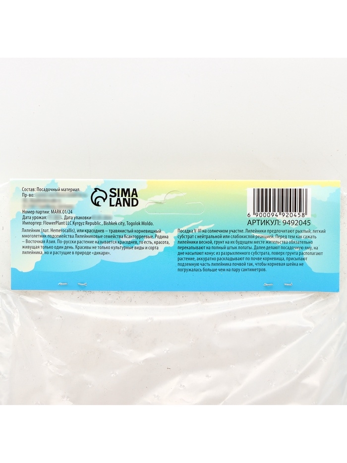 Лилейник Vanilla With Love, многолетник, корневище в пакете с торфогрунтом, р-р I, 1 шт.