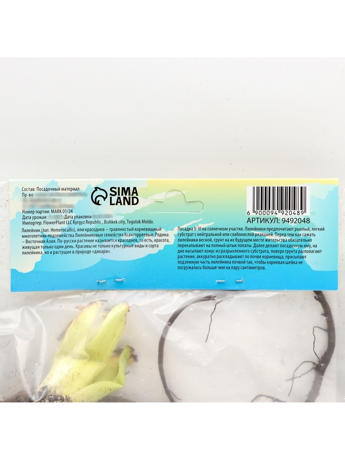 Лилейник Roswitha, многолетник, корневище в пакете с торфогрунтом, р-р I, 1 шт.