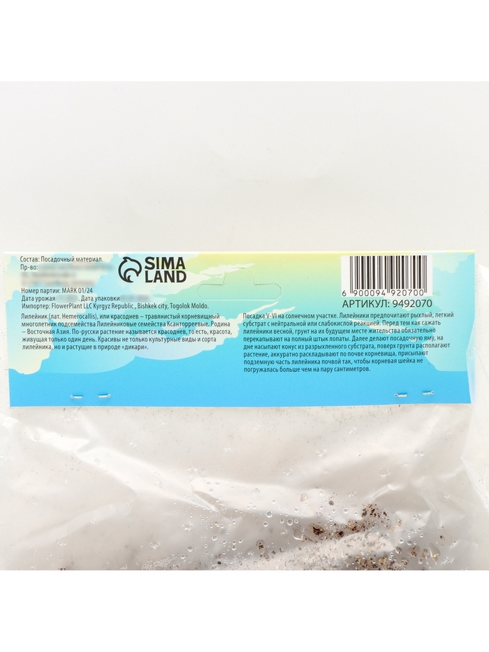 Лилейник Roswitha, многолетник, корневище в пакете с торфогрунтом, р-р I, 1 шт.