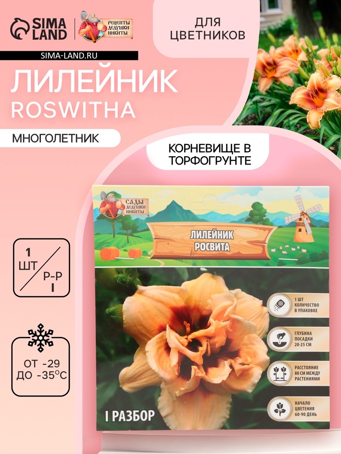 Для солнечных композиций: Лилейник «Roswitha» особенно хорош в сочетании с синими и фиолетовыми цветами, создавая эффектные контрасты. Корневище упаковано в питательный субстрат – готово к посадке сразу после получения. Этот неприхотливый многолетник станет ярким акцентом вашего цветника на многие годы.
