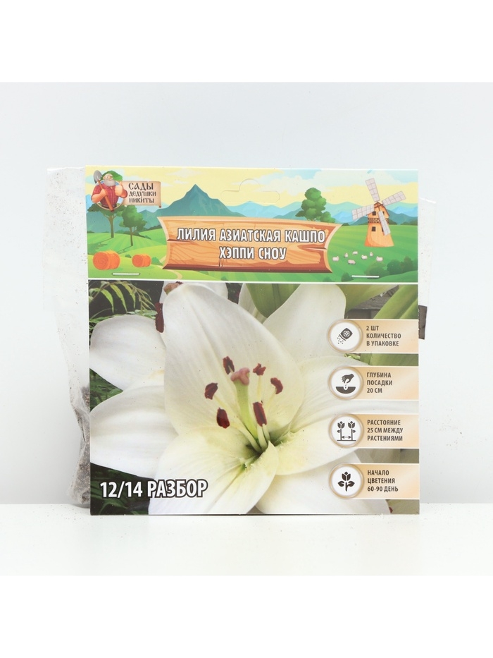 Лилия Азиатская Кашпо Happy Snow, луковица в пакете с перфорацией, р-р 12/14, 2 шт.