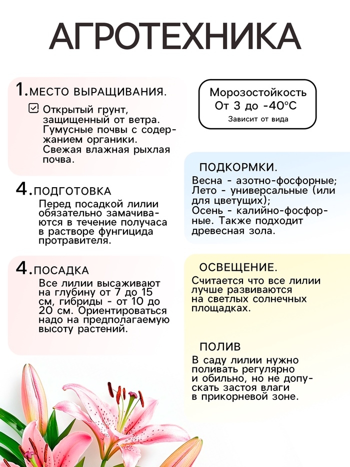 Агротехника: лилии могут выращиваться на одном месте (без пересадки) в течение 3-5 лет.