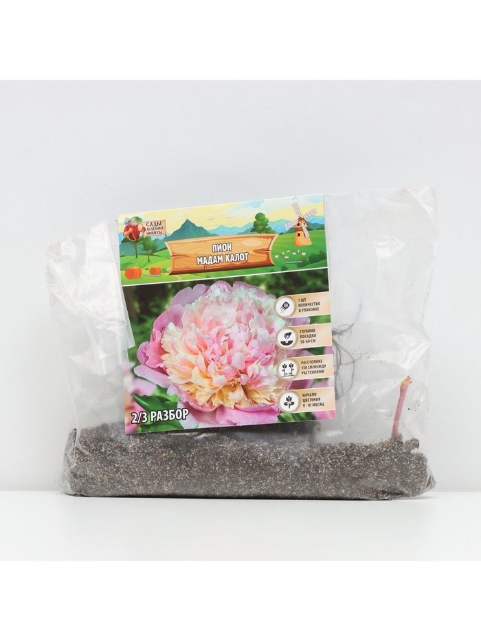 Пион Madame Calot, корневище в пакете с торфогрунтом, р-р 2/3, 1 шт.