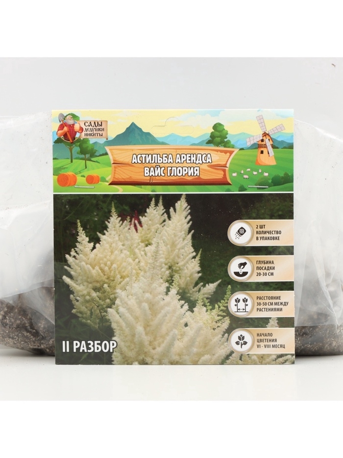 Рассада астильбы Арендса Вейс Глория (Weisse Gloria) – вырастет в необычайно эффектные растения с белыми ромбовидными соцветиями и душистым ароматом. Цветение начинается в начале июля и длится до 30 дней. Белоснежность цветов выгодно подчеркивает блестящая зеленая листва. Растение имеет форму кустов с высокими и мощными побегами. Великолепно смотрится на клумбе и возле деревьев, долго стоит в срезке. Сорт хорошо размножается семенами.