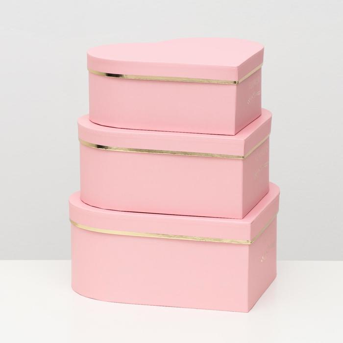 Набор коробок 3 в 1 "Сердца" розовый, 28.5 x 26 x 11 - 23.5 x 21 x 8.5 см