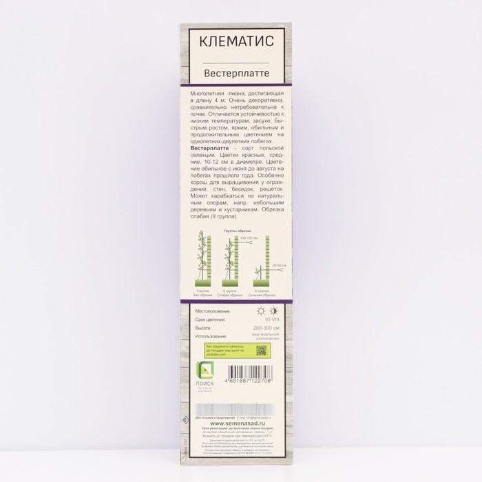 Клематис крупноцветковый "Вестерплатте", туба, 1 шт, Весна 2025
