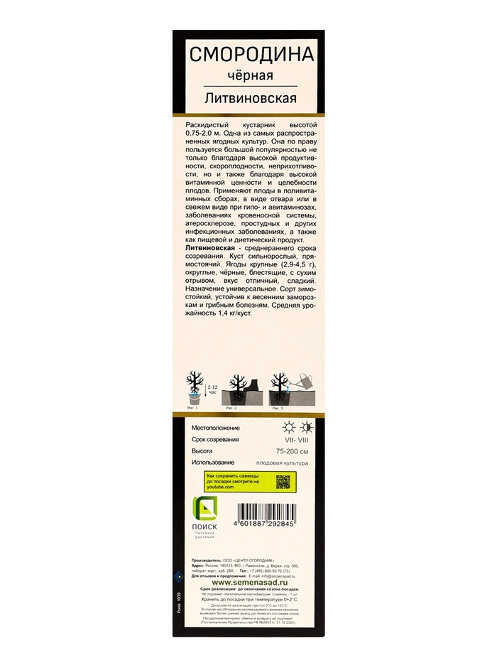 Смородина черная перспективные сорта "Литвиновская", 1 шт, туба, Весна 2025