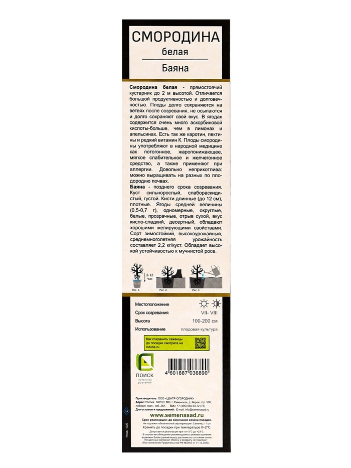 Смородина белая «Баяна», саженец, туба, 1 шт.