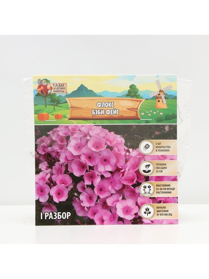 Флокс «Бэби Фейс» корневище в пакете с торфогрунтом, р-р I, 2 шт.