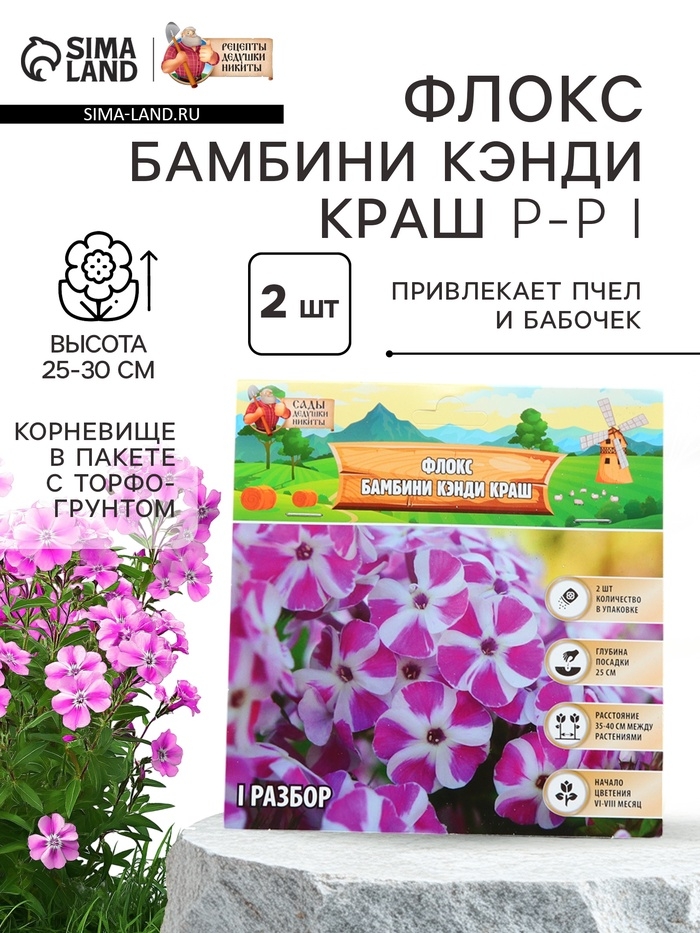 Флокс «Бамбини Кэнди Краш» ркорневище в пакете с торфогрунтом, -р I, 2 шт.