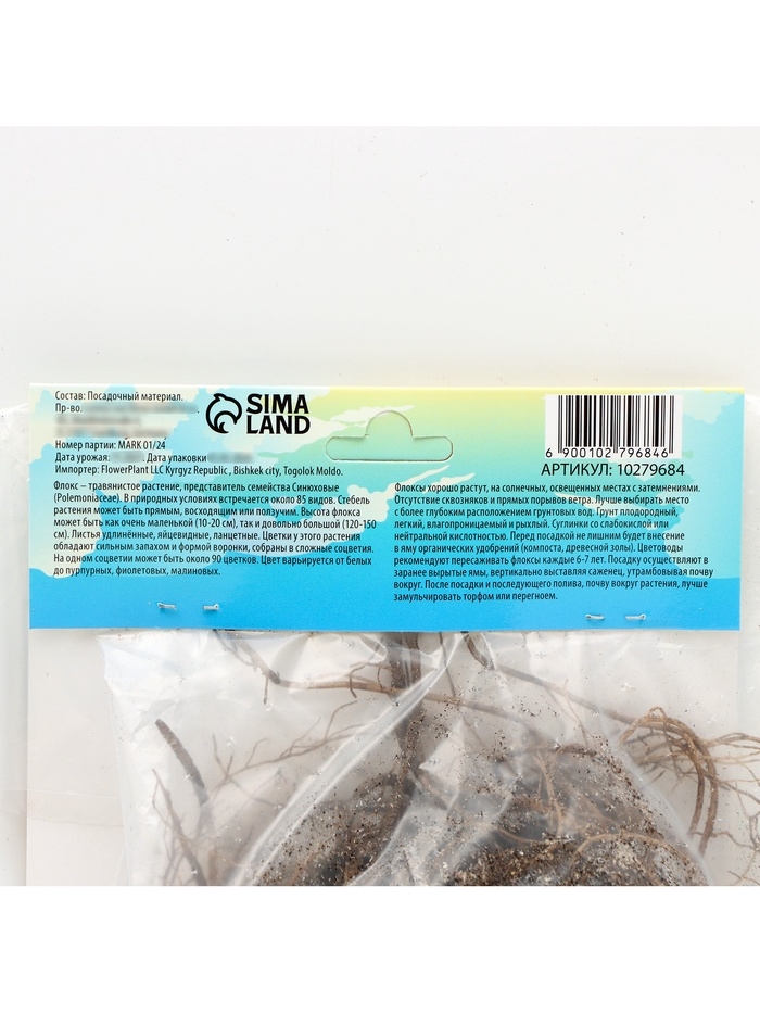 Флокс метельчтый Miss pepper корневище в пакете с торфогрунтом, р-р II, 2 шт.
