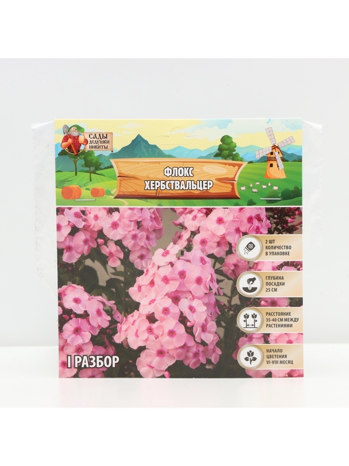 Флокс «Хербствальцер» корневище в пакете с торфогрунтом, р-р I, 2 шт.