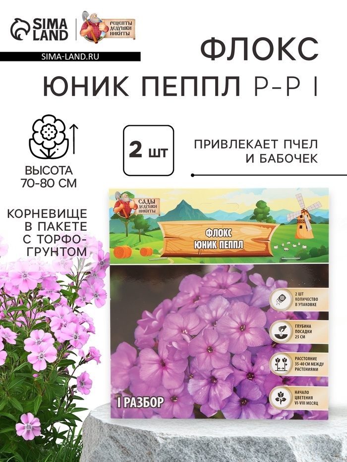 Флокс "Юник Пеппл" р-р I, 2 шт, Весна 2025, ЭКОНОМ,