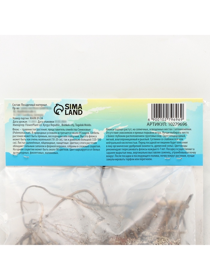 Флокс «Зенобия» корневище в пакете с торфогрунтом, р-р I, 2 шт.