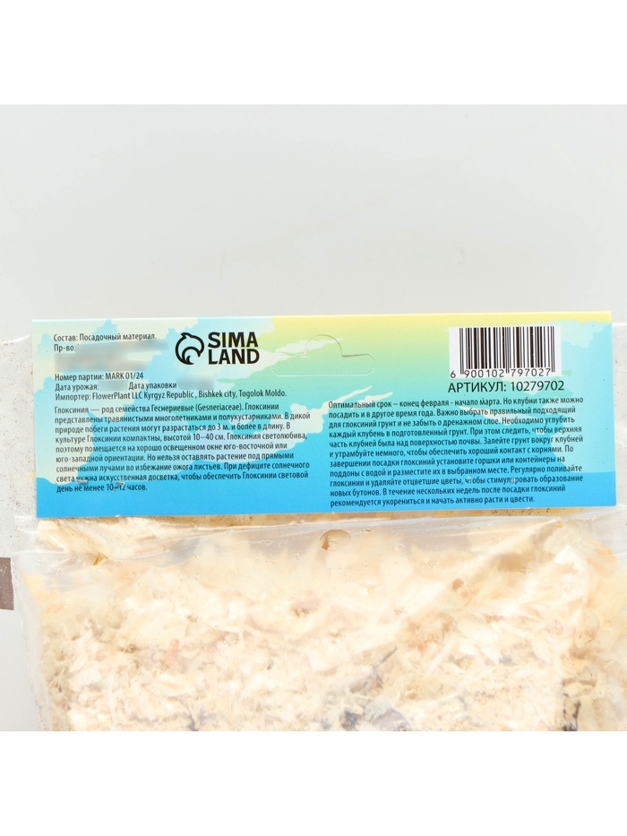 Глоксиния «Монт Бланк», многолетник, комнатный, луковица в пакете с перфорацией, р-р 5/6, 2 шт.