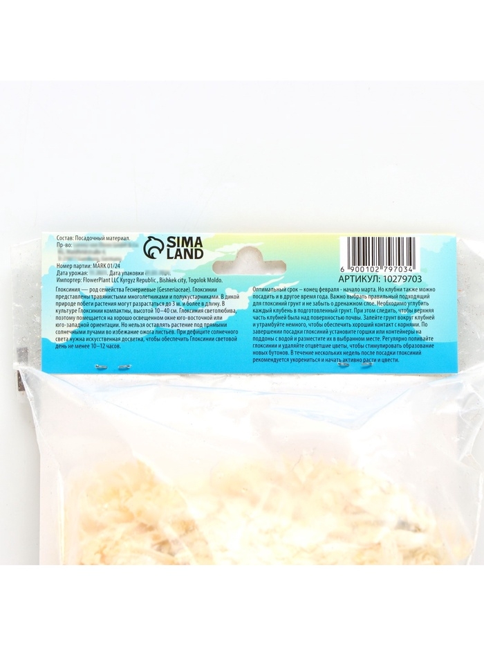 Глоксиния «Монт Бланк», многолетник, комнатный, луковица в пакете с перфорацией, р-р 5/6, 2 шт.