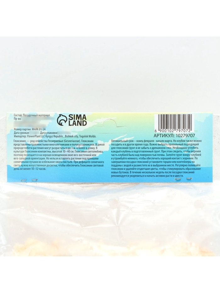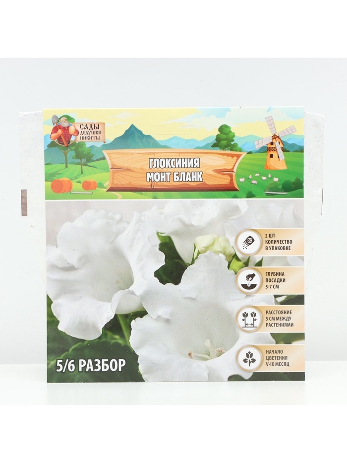 Глоксиния «Монт Бланк», многолетник, комнатный, луковица в пакете с перфорацией, р-р 5/6, 2 шт.