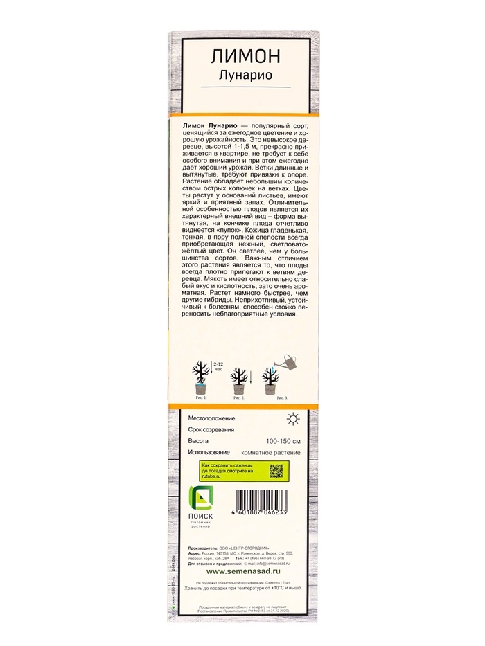 Цитрус "Лимон Лунарио", туба, 1 шт, Весна 2025