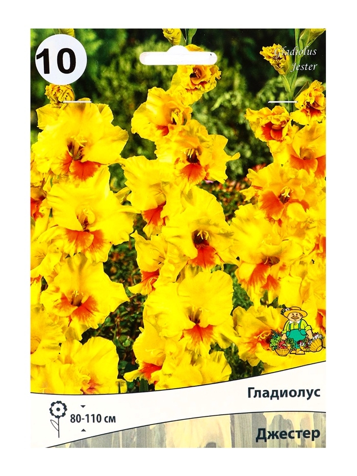 Гладиолус – клубнелуковичное растение высотой 50-150 см с вертикальным стеблем и линейными или мечевидными листьями. Цветки воронковидные, собраны в колосовидное соцветие до 80 см длиной, самых разнообразных окрасок, могут быть простыми или гофрированными.Месторасположение: хорошо освещенные, защищенные от ветра участки.Почва: суглинистые или супесчаные, достаточно дренированные со слабокислой реакцией.Посадка: луковицы высаживают, когда почва на глубине 10-12 см прогреется до температуры 8…10 0С. Слой почвы над взрослой луковицей должен быть около 8-10 см. Мелкие клубнелуковицы высаживают через 5-10 см друг от друга, крупные – через 10-15 см.Уход: всходы желательно замульчировать торфом слоем 2-3 см. В течение лета растениям необходимо обеспечить регулярный полив, рыхление и 2-3 подкормки минеральными удобрениями. Срезку лучше проводить утром или вечером. В открытом грунте растение не зимует. Луковицы выкапывают осенью до наступления устойчивых холодов, просушивают и хранят в сухом прохладном месте.Использование: для посадки в цветники и клумбы. Идеальны для срезки. Джестер - высота растения 80-110 см. Цветок желтый с красно-малиновым пятном, гофрированный.