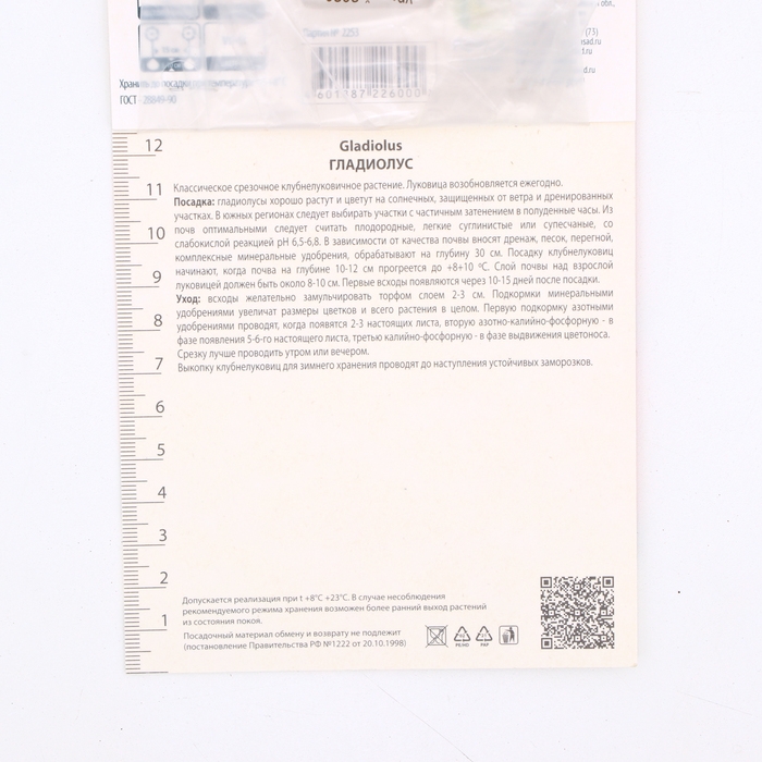 Гладиолус крупноцветковый «Эдванс», луковица цветов в пакете с перфорацией, р-р 10/12, 3 шт.
