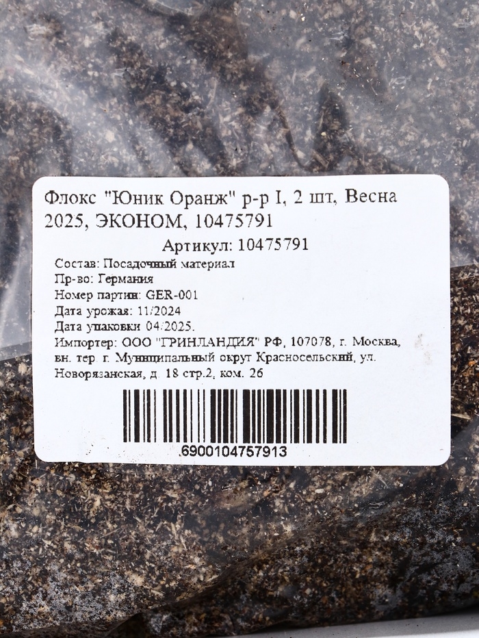 Флокс "Юник Оранж" р-р I, 2 шт, Весна 2025, ЭКОНОМ,
